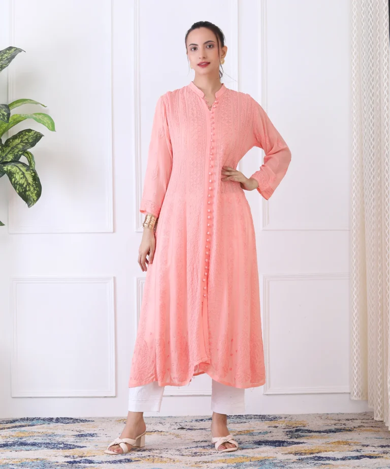 Baby Pink Kurta Set with Chika...