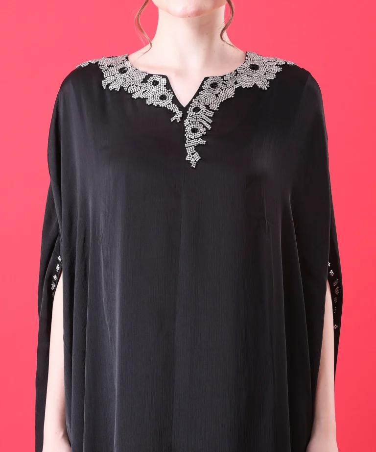 Black Crape Kaftan with Handwo...