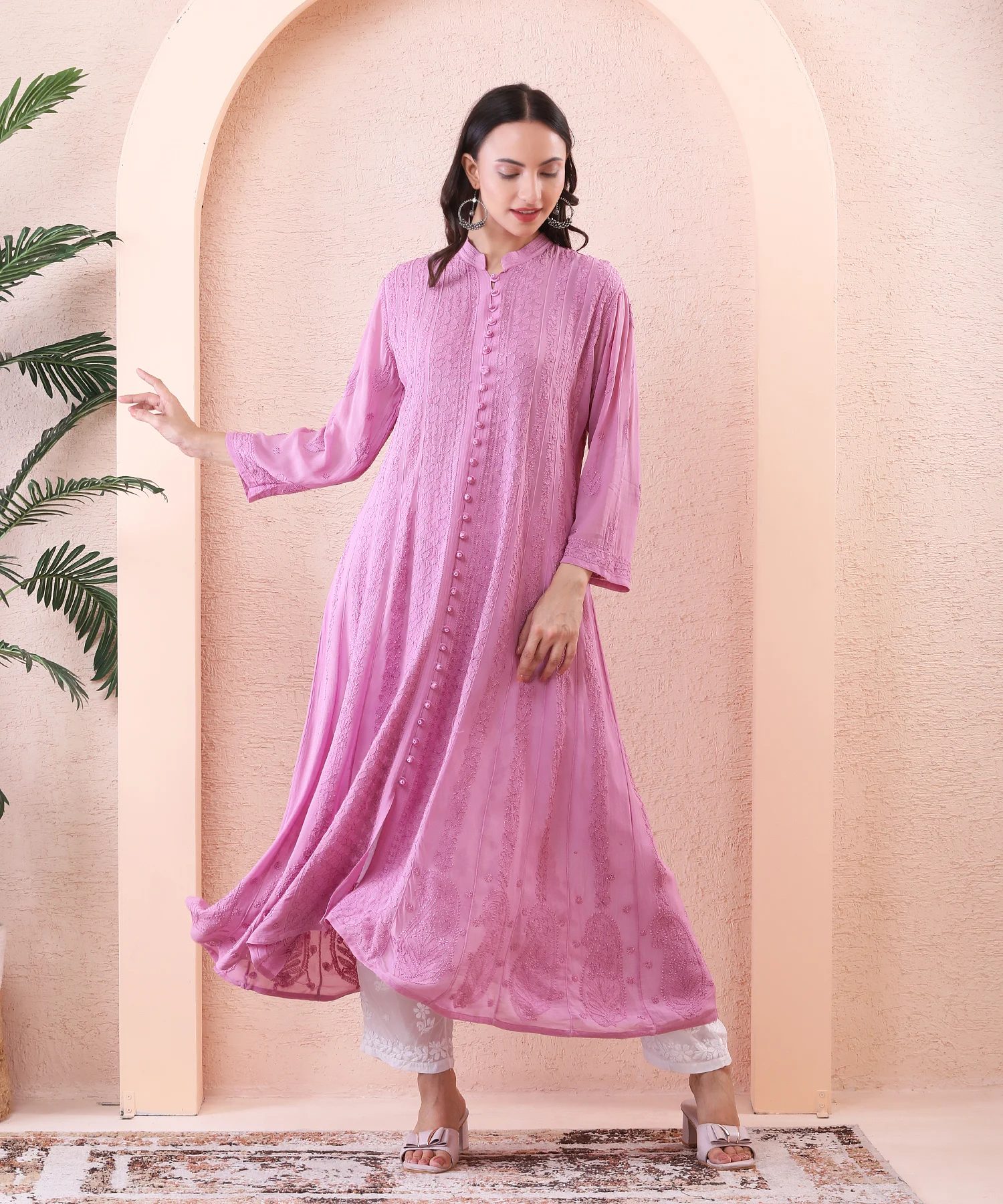 Be the first to review “Anarkali Suit Set in Pink Color with Chikan Embroidery” Cancel reply