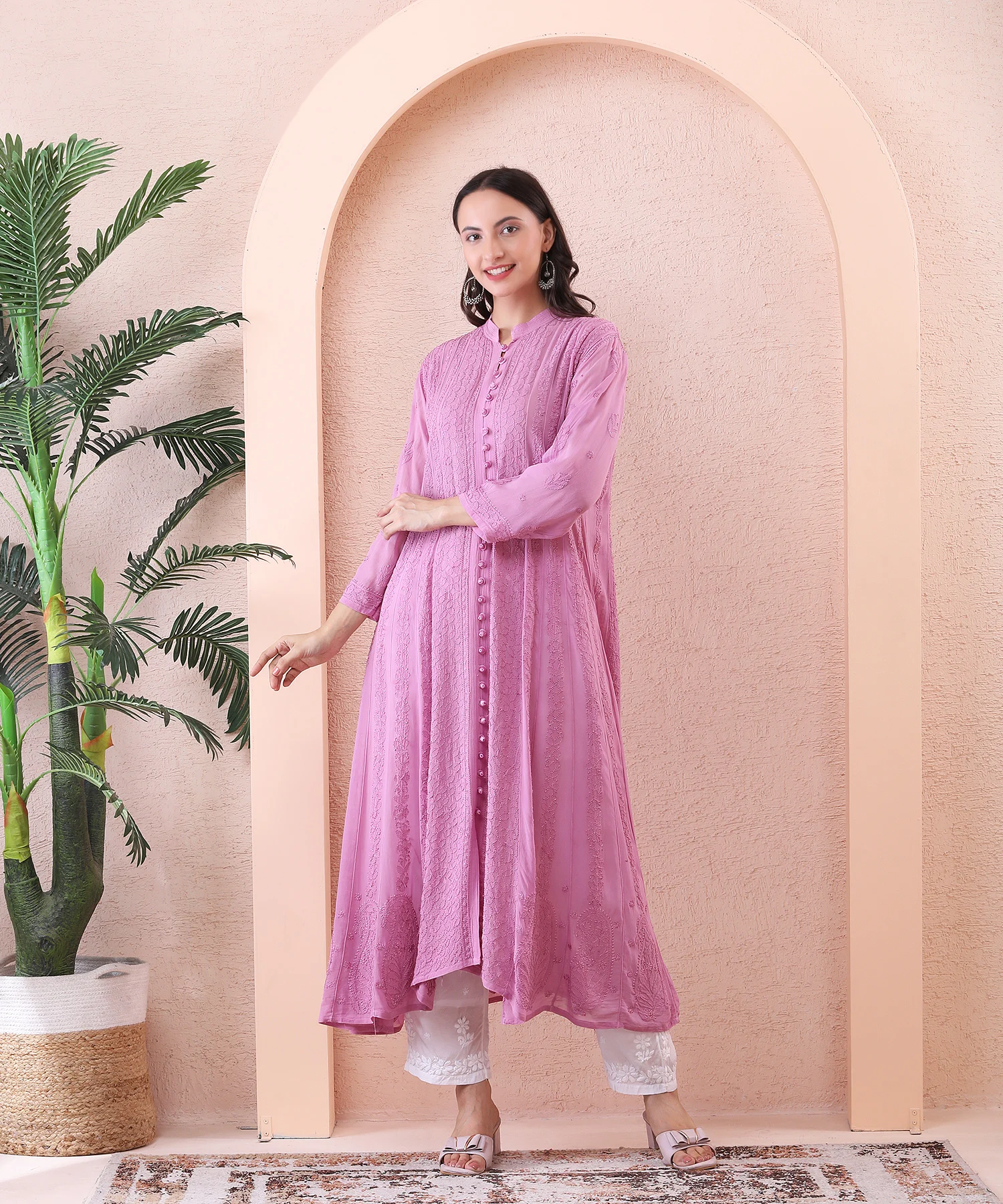 Anarkali Suit Set in Pink Color with Chikan Embroidery