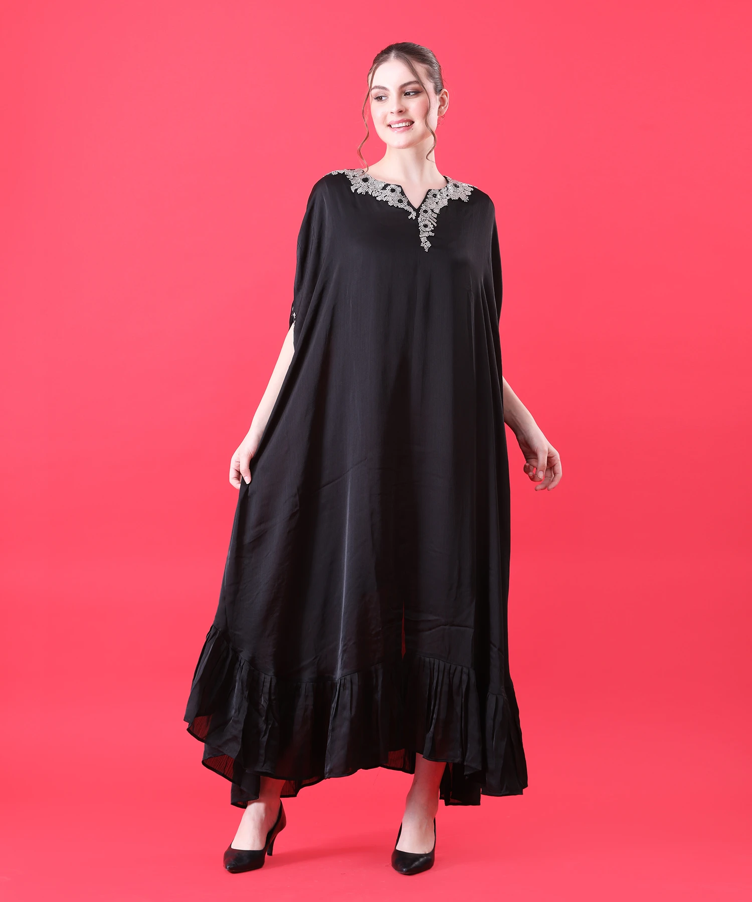 Black Kaftan Dress in Imported Chinnon with Metallic Stone