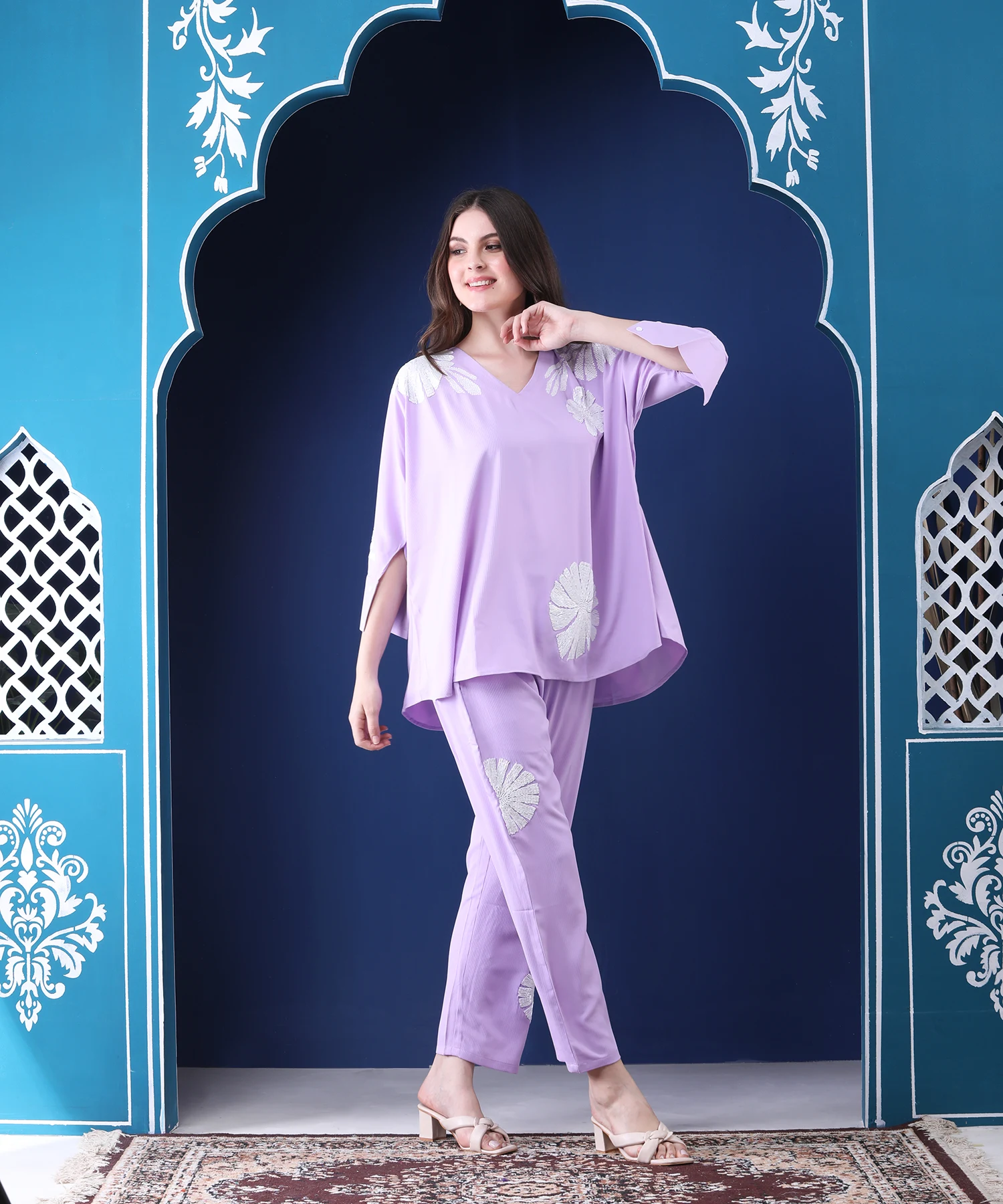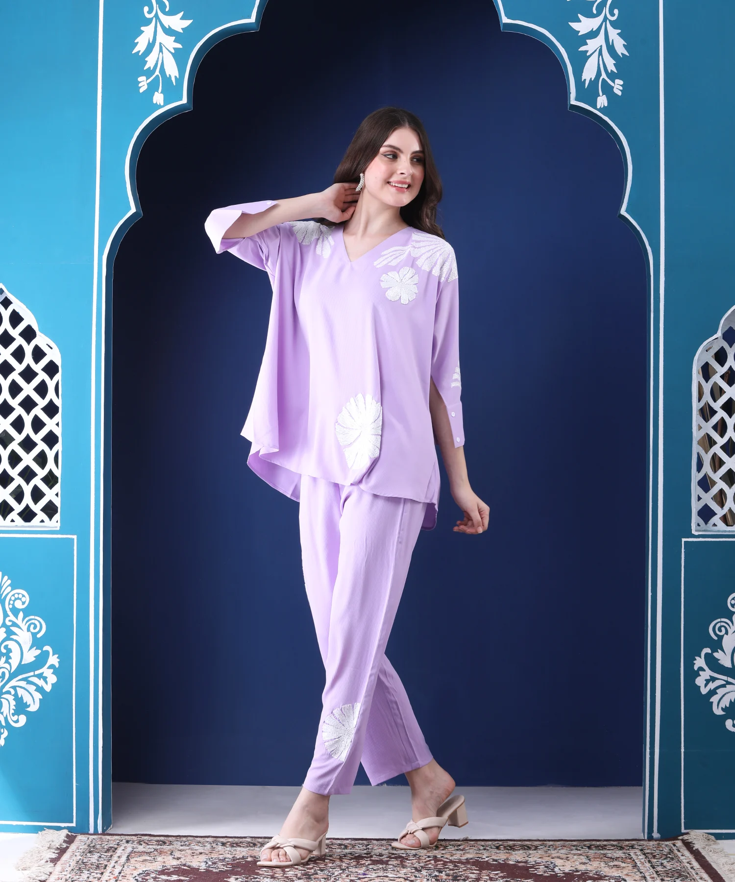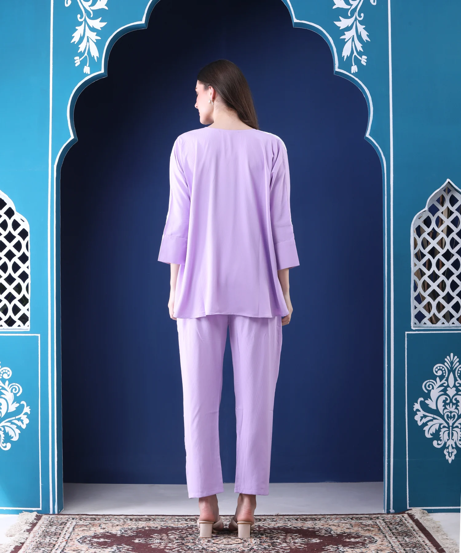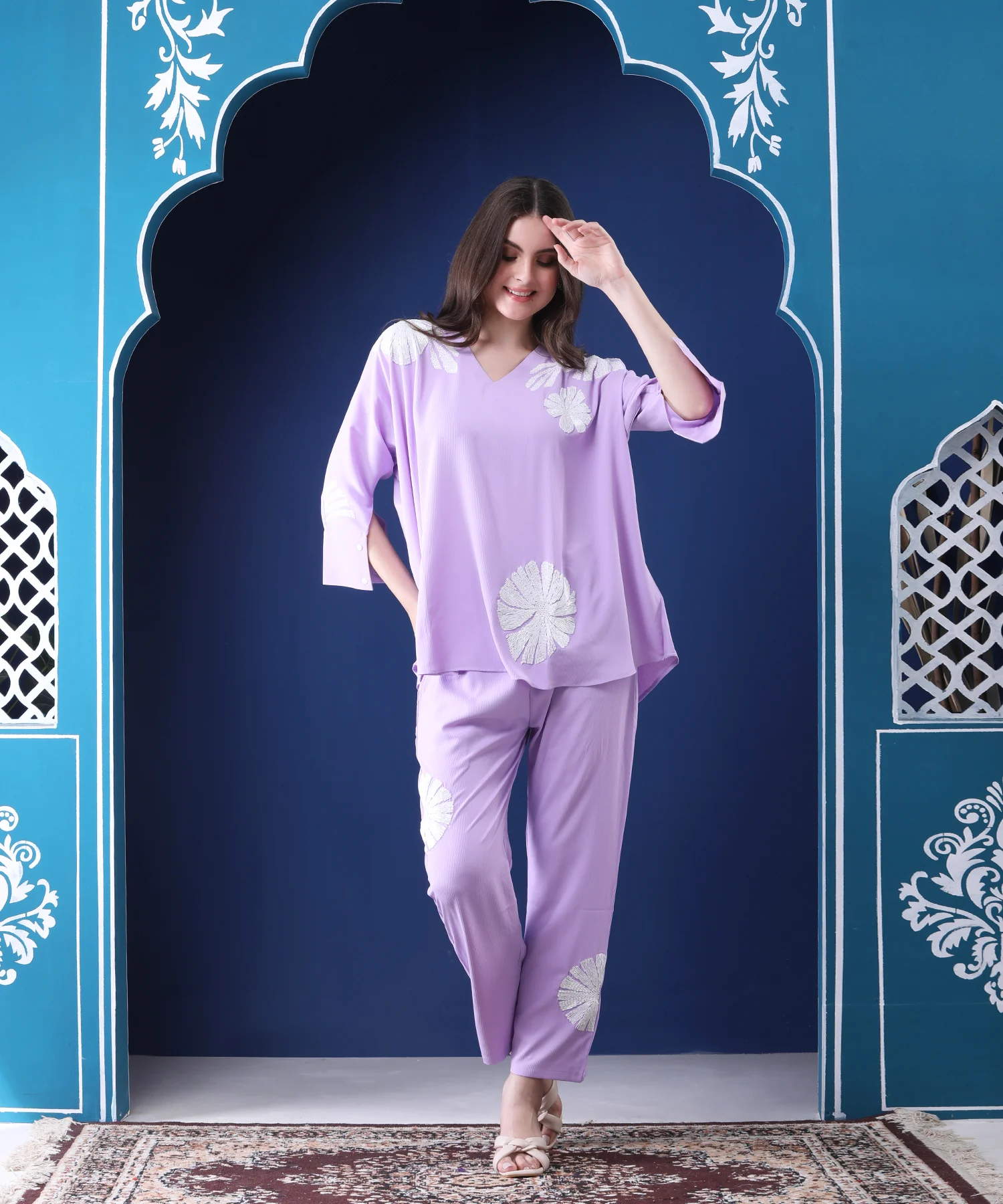 Lavender Two-Piece Co-ord Set with Hand Embroidery