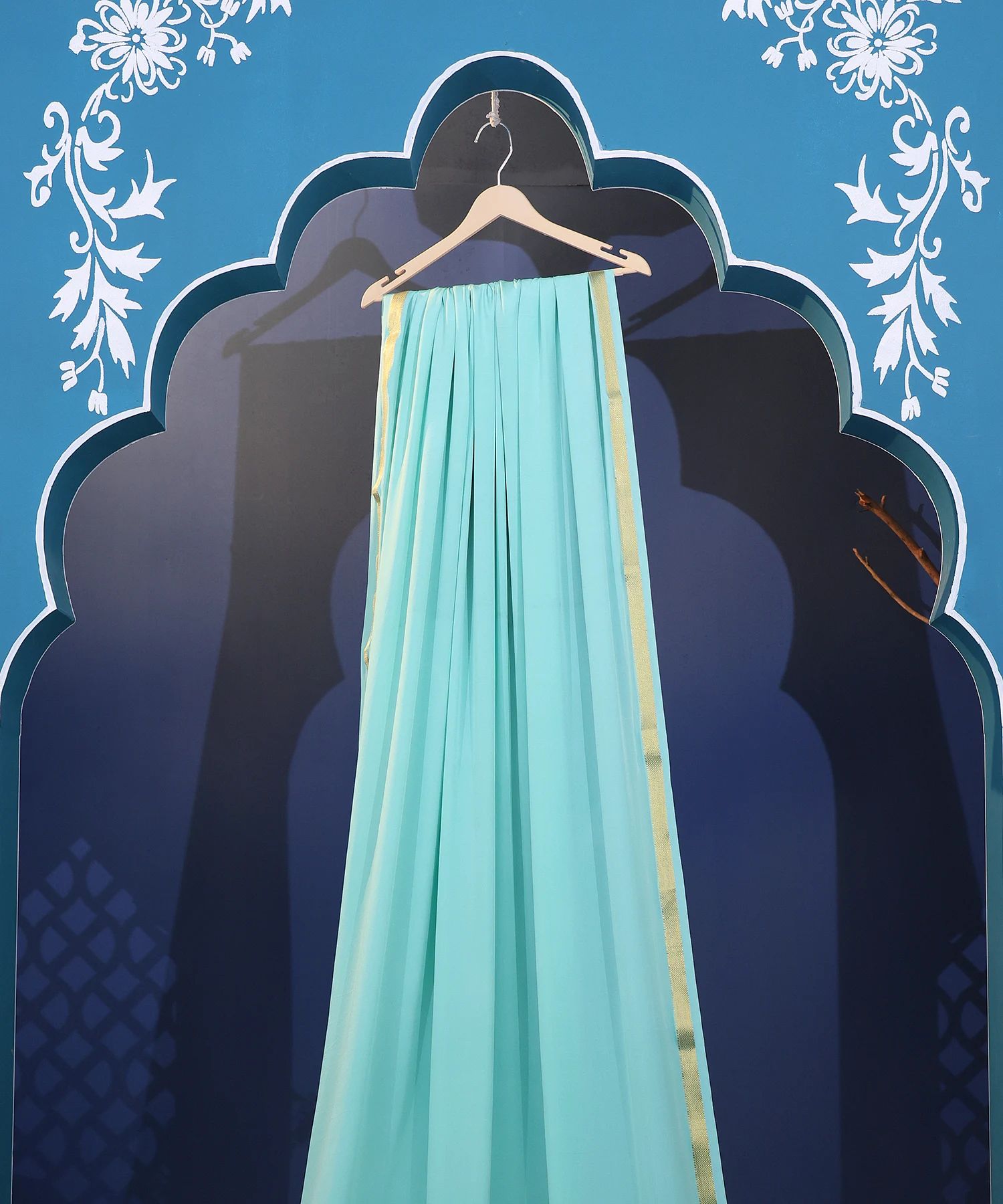 Mysore Silk Plain Teal Green Saree with Golden Zari