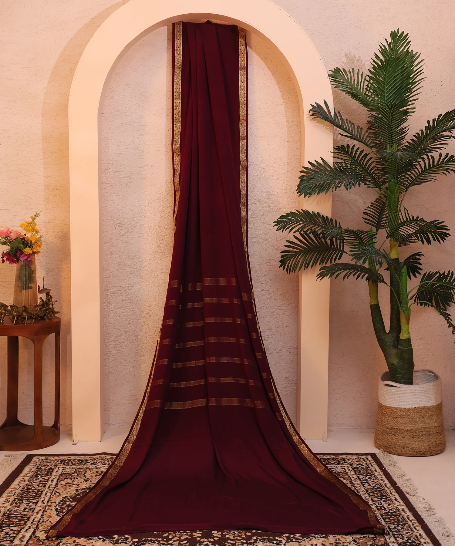 Mysore Silk Wine Color Saree with Sleek Golden Zari
