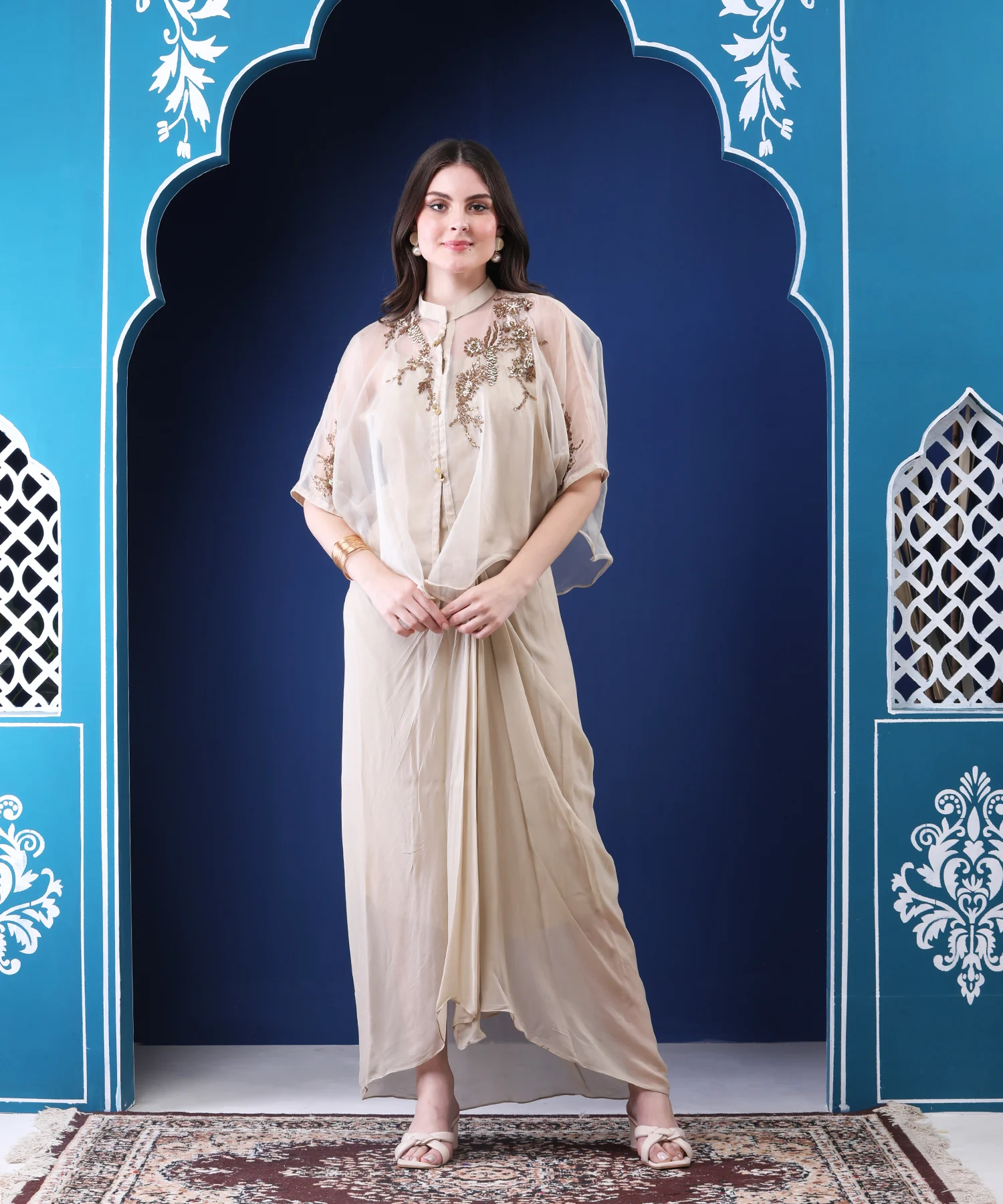 Bandhej Printed Kaftan in Georgette with Gotta Patti Hand Emroidery