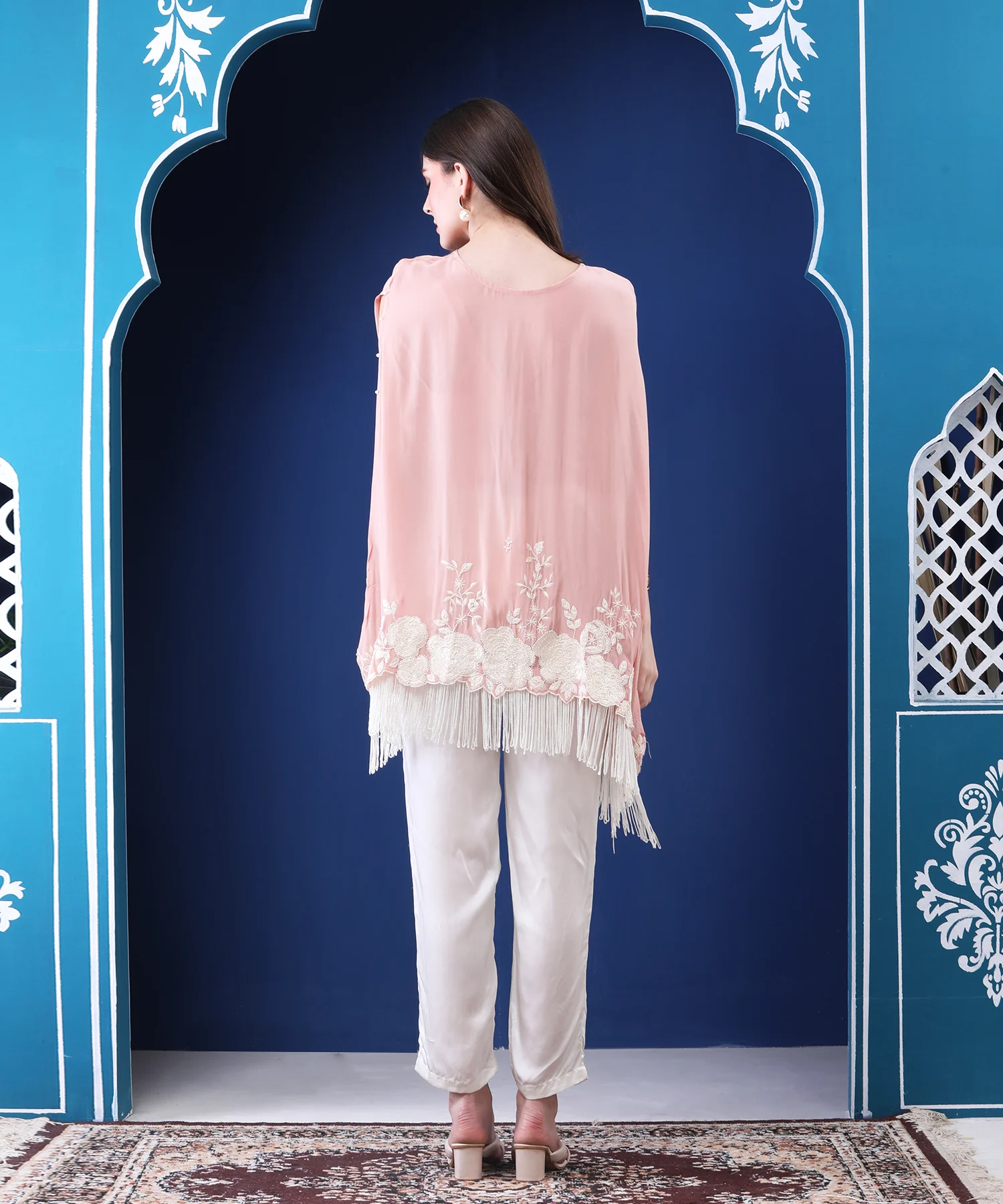 Pastel Peach Crape Kaftan Cord Set with Bead Embroidery
