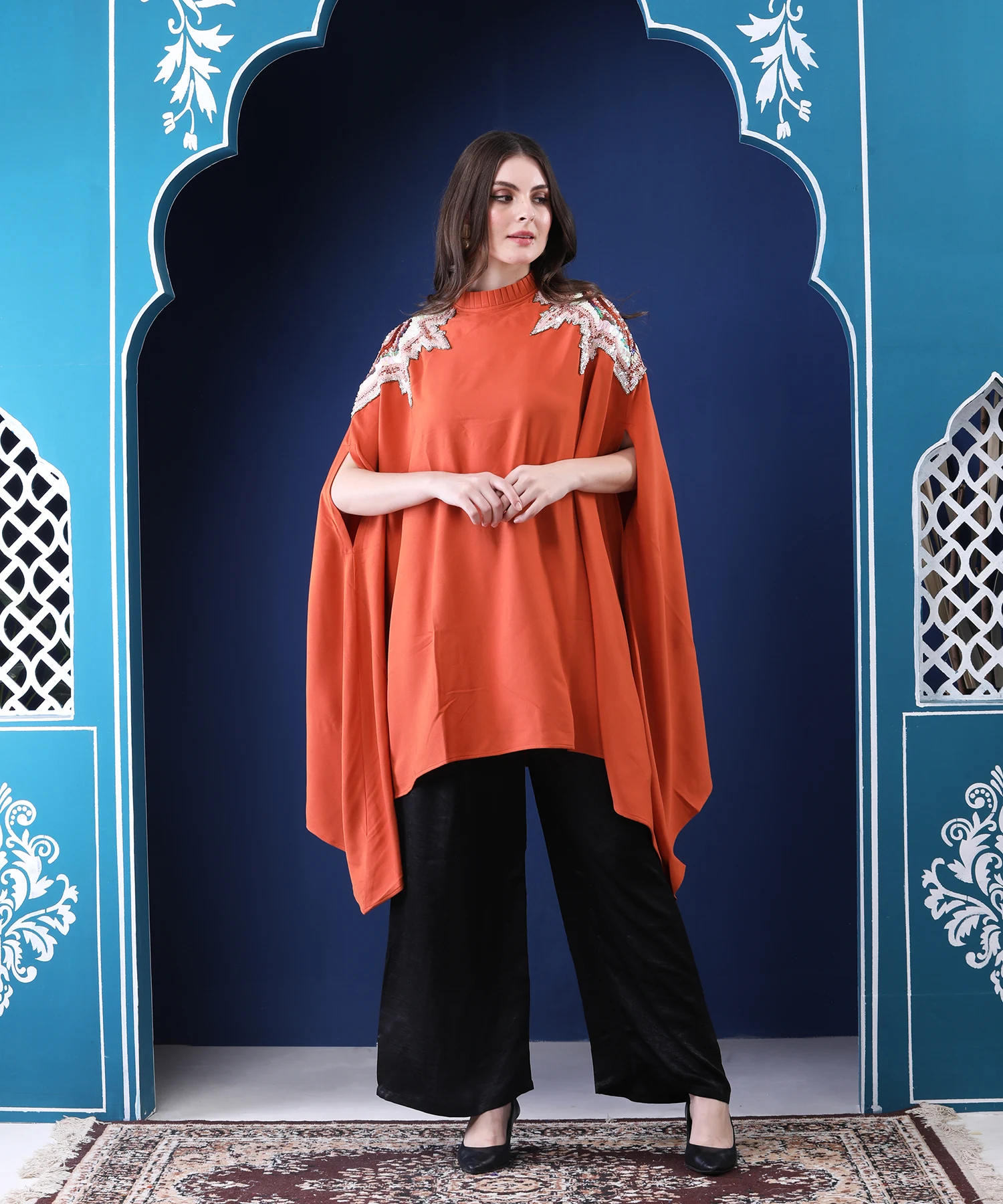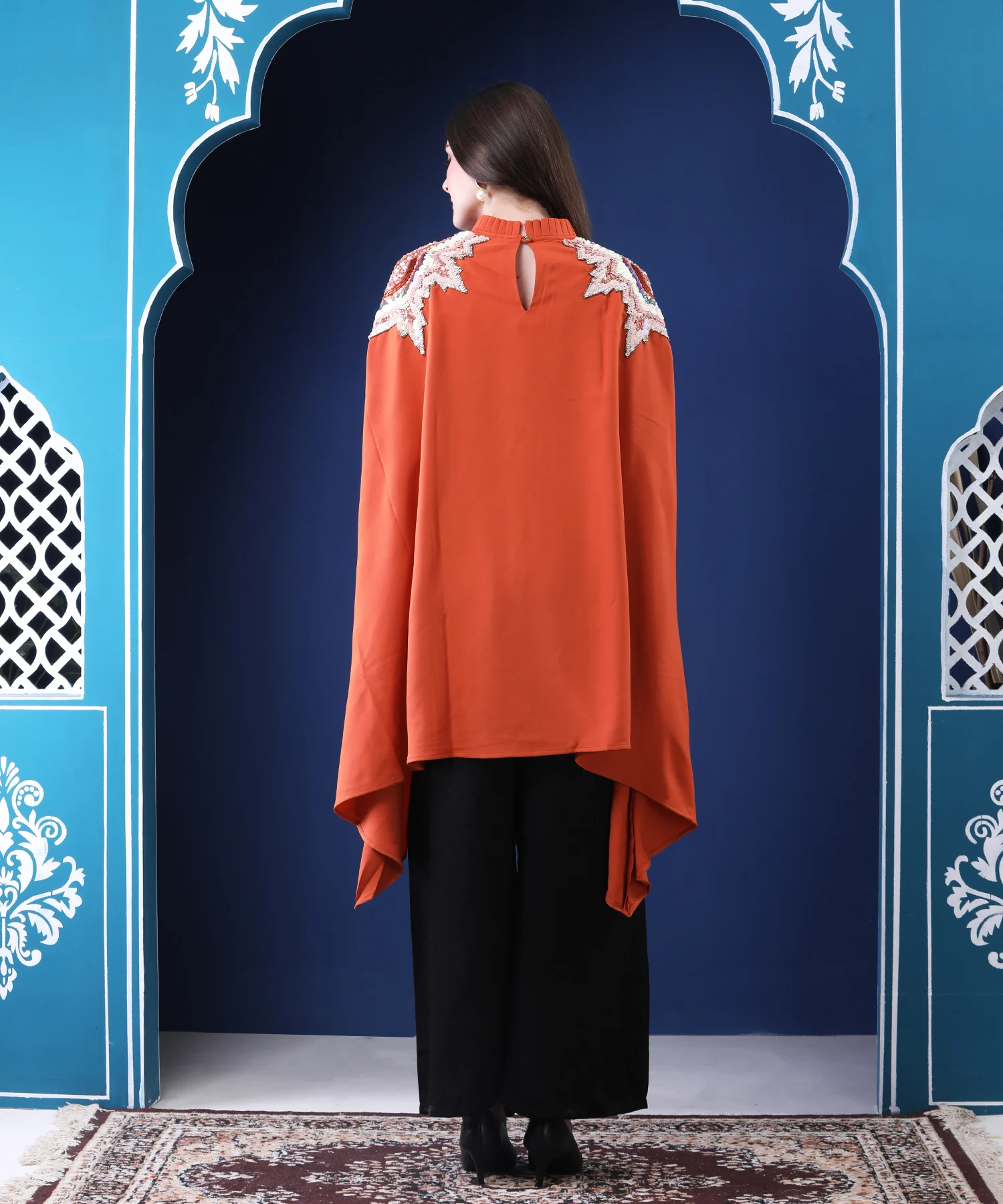 Rust Cape Top in Heavy Georgette with Sequin Handwork